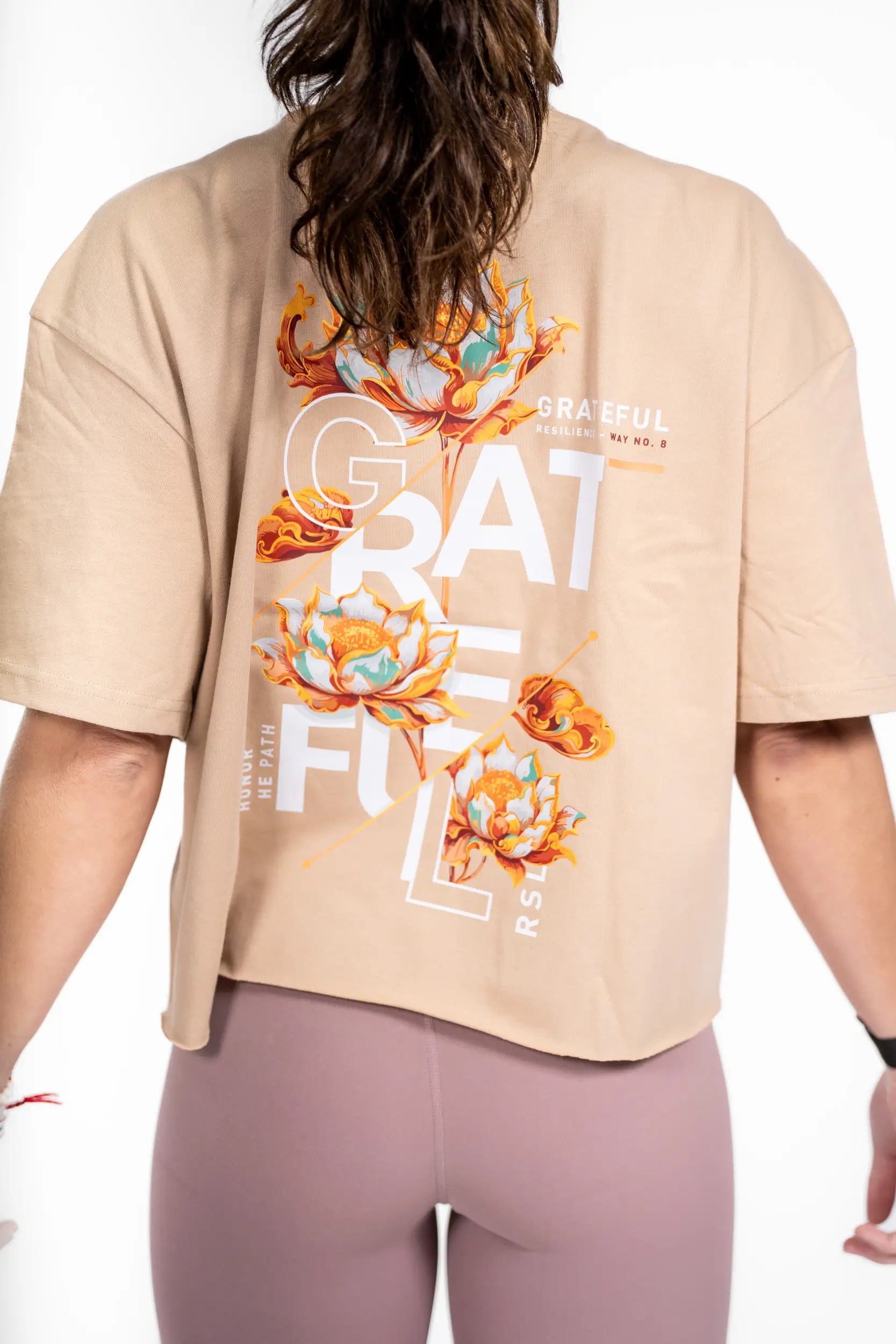 Das Oversize-Crop-Top „Grateful“ besteht aus demselben dicken, hochwertigen Material wie das Unisex-Modell, hat jedoch einen kürzeren, strukturierten Schnitt und ist für einen selbstbewussten Alltagslook konzipiert. Sein lockerer Schnitt und die hochwertige Baumwolle verleihen ihm einen modernen, robusten Look, ohne dabei Kompromisse beim Tragekomfort einzugehen.