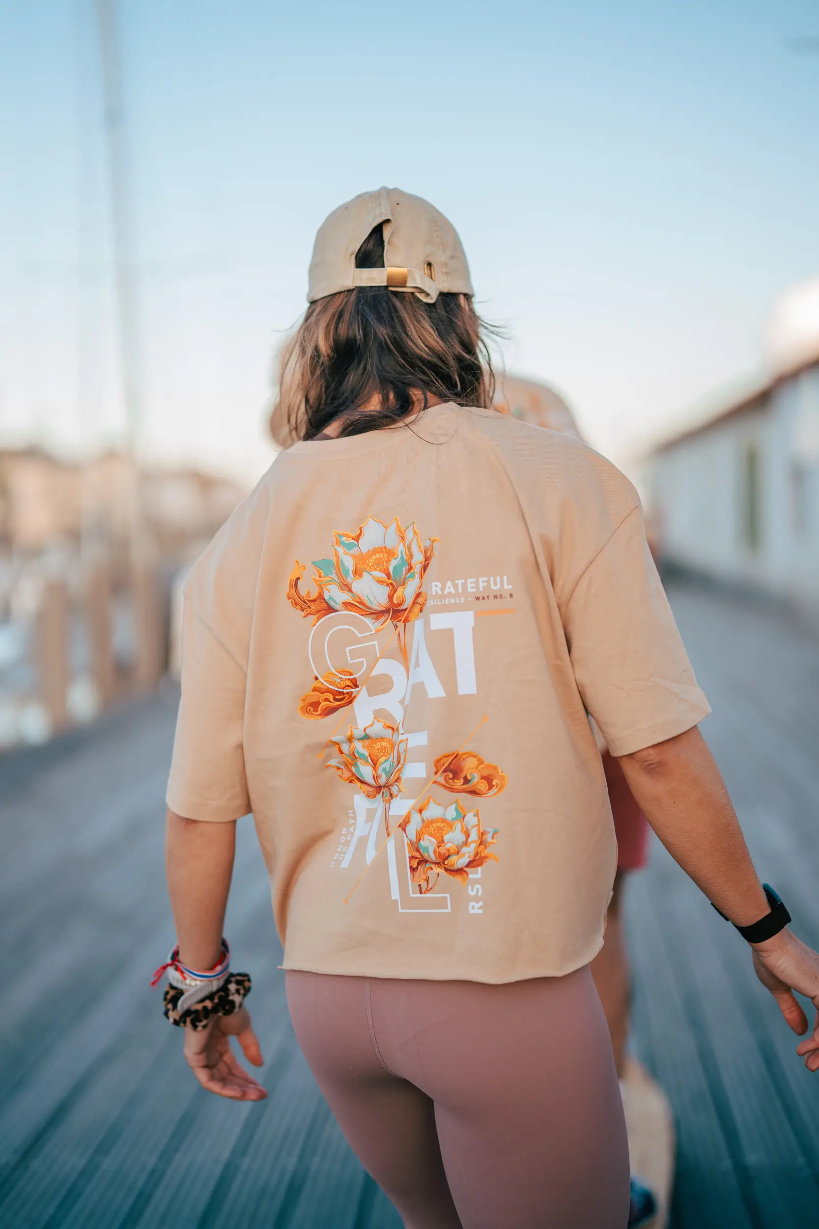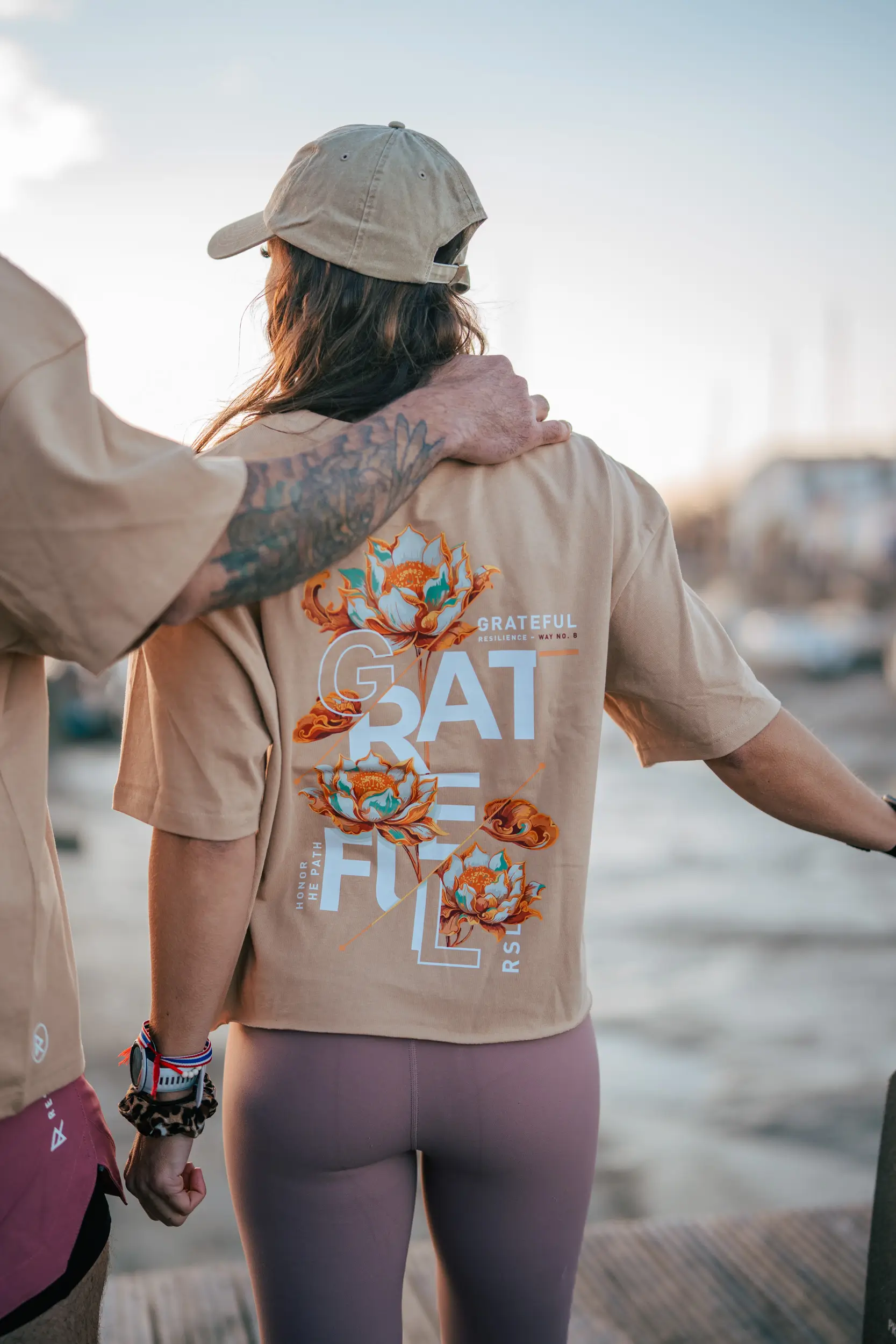 Dieses Design stammt aus der „Gratitude“-Kollektion und unterstreicht die Kraft, jede Etappe mit Dankbarkeit anzunehmen. Durch voll erblühte Lotusblumen, Symbol für Entwicklung und Ausgeglichenheit, verkörpert es die Würdigung des eigenen Weges mit all seinen Höhen und Tiefen. Die Botschaften „Grateful“ und „Honor the path“ erinnern daran, dass jeder Fortschritt zählt und dass Resilienz auch in der Fähigkeit liegt, das Positive zu sehen und den zurückgelegten Weg zu schätzen.