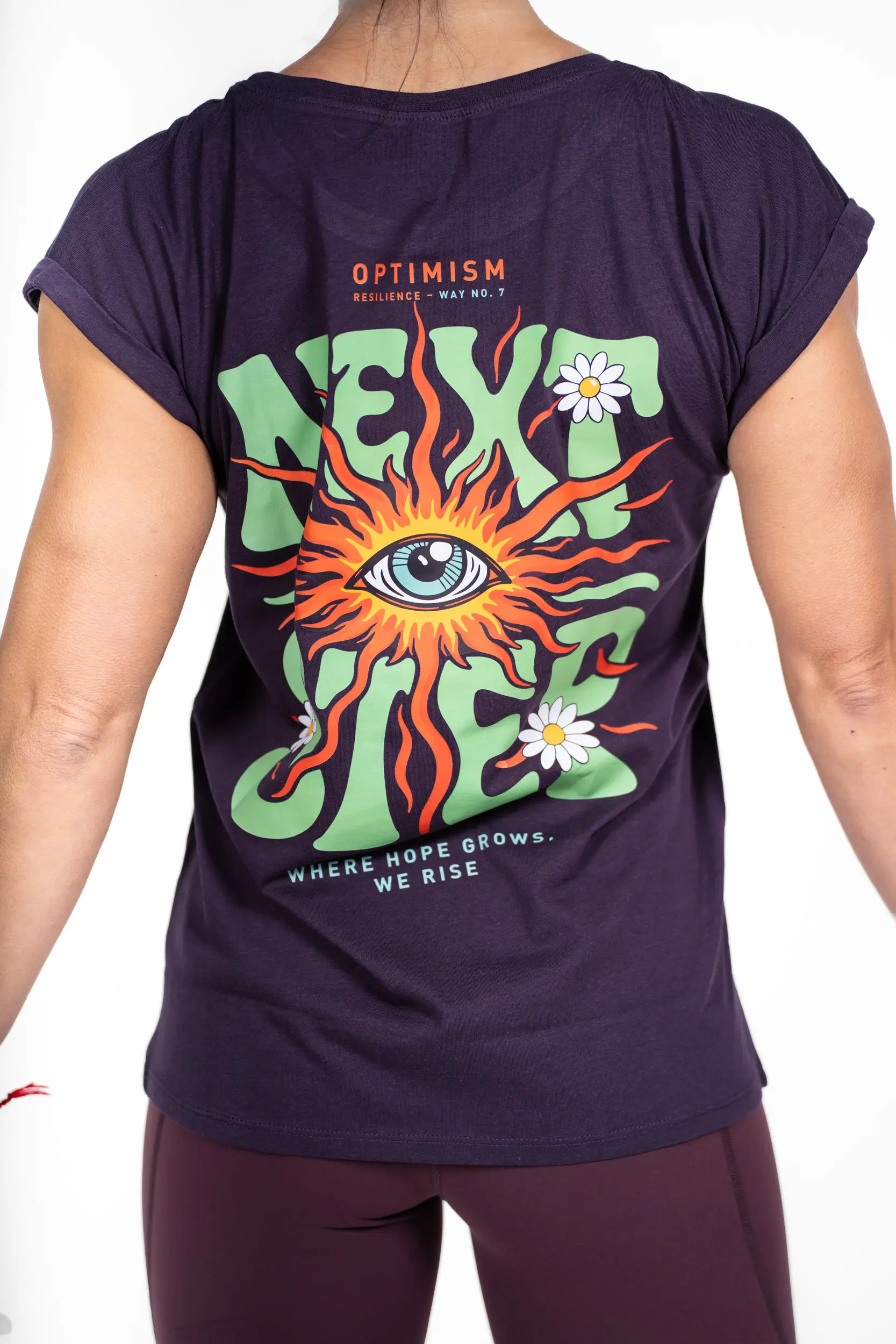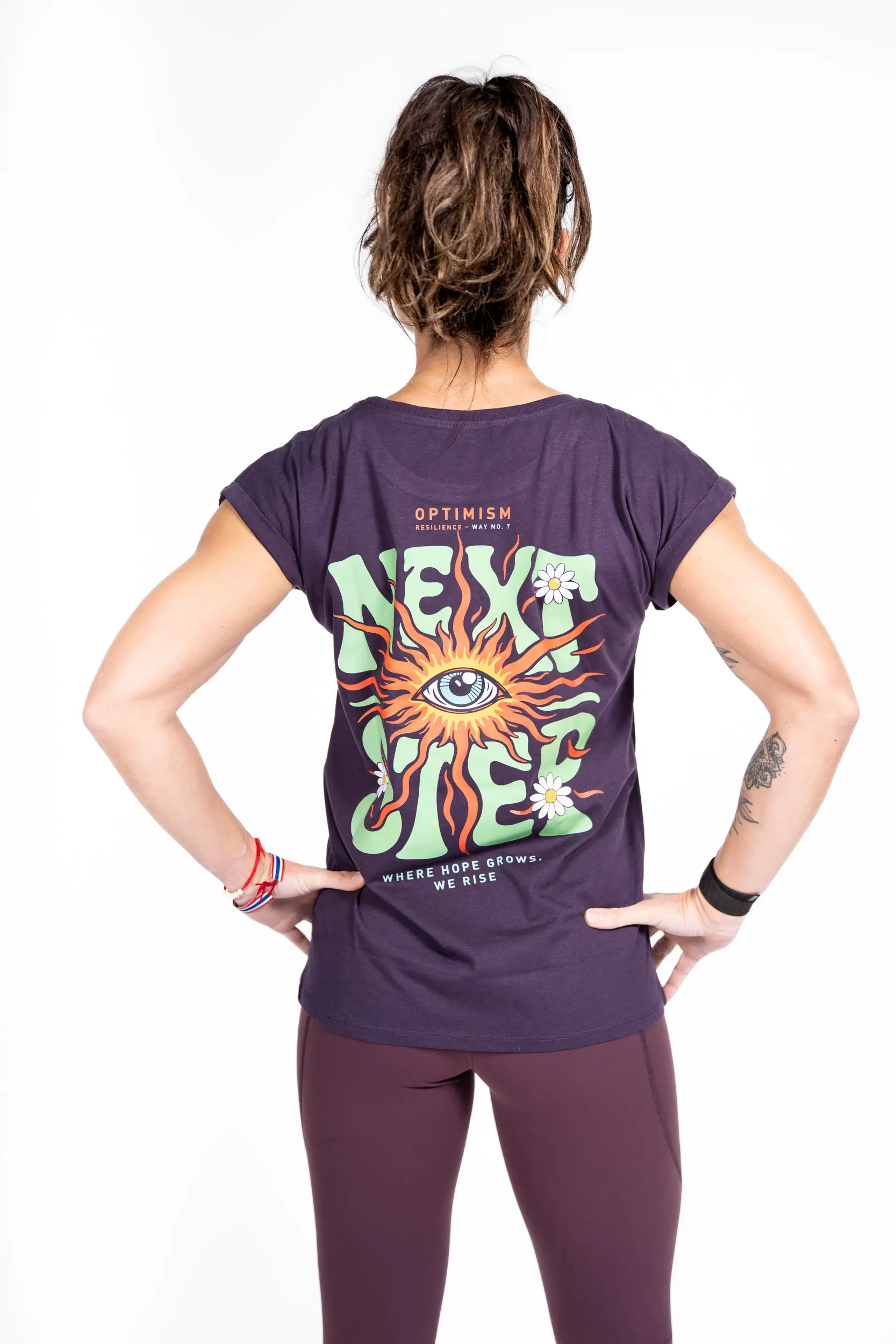 Dieses Design stammt aus der „Optimismus“-Reihe und zeigt ein Sonnenaugen, Symbol für Weitblick, Klarheit und die Fähigkeit, über Hindernisse hinwegzusehen, umgeben von Lichtstrahlen, die Energie und Positivität vermitteln; Mit der Botschaft „Next step“ verkörpert es jene mentale Stärke, die dazu antreibt, stets nach vorne zu blicken, an den weiteren Weg zu glauben und jeden Schritt in eine Chance zu verwandeln – ein starkes Symbol für optimistische Resilienz, bei der der Blick in die Ferne zu einem echten Antrieb wird, um voranzukommen.