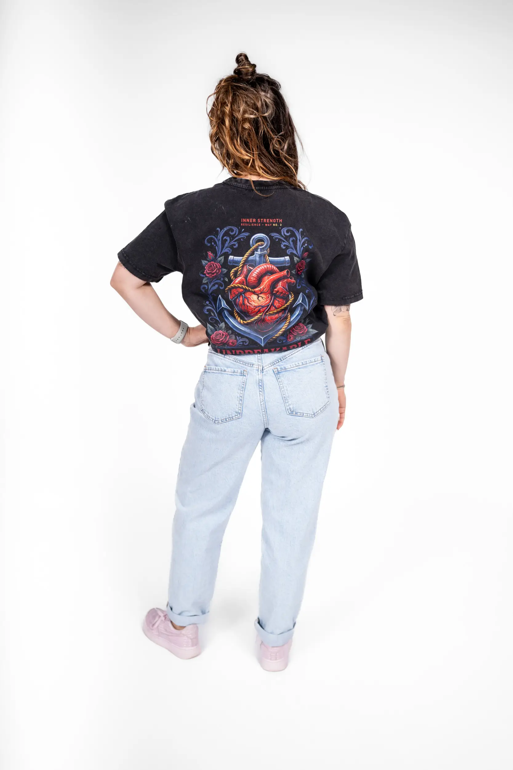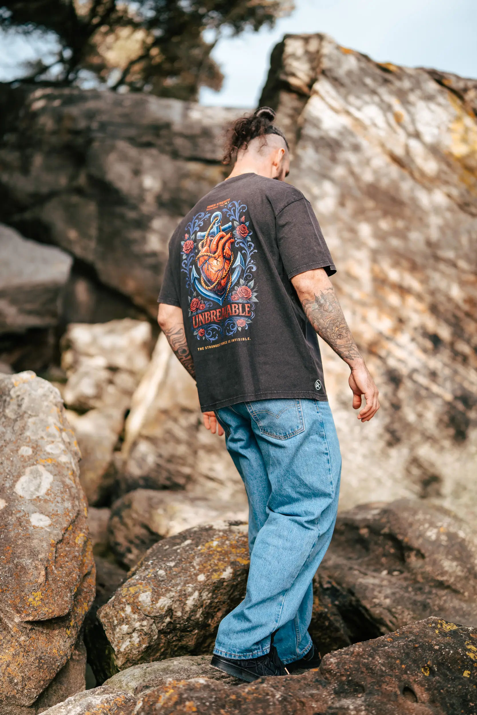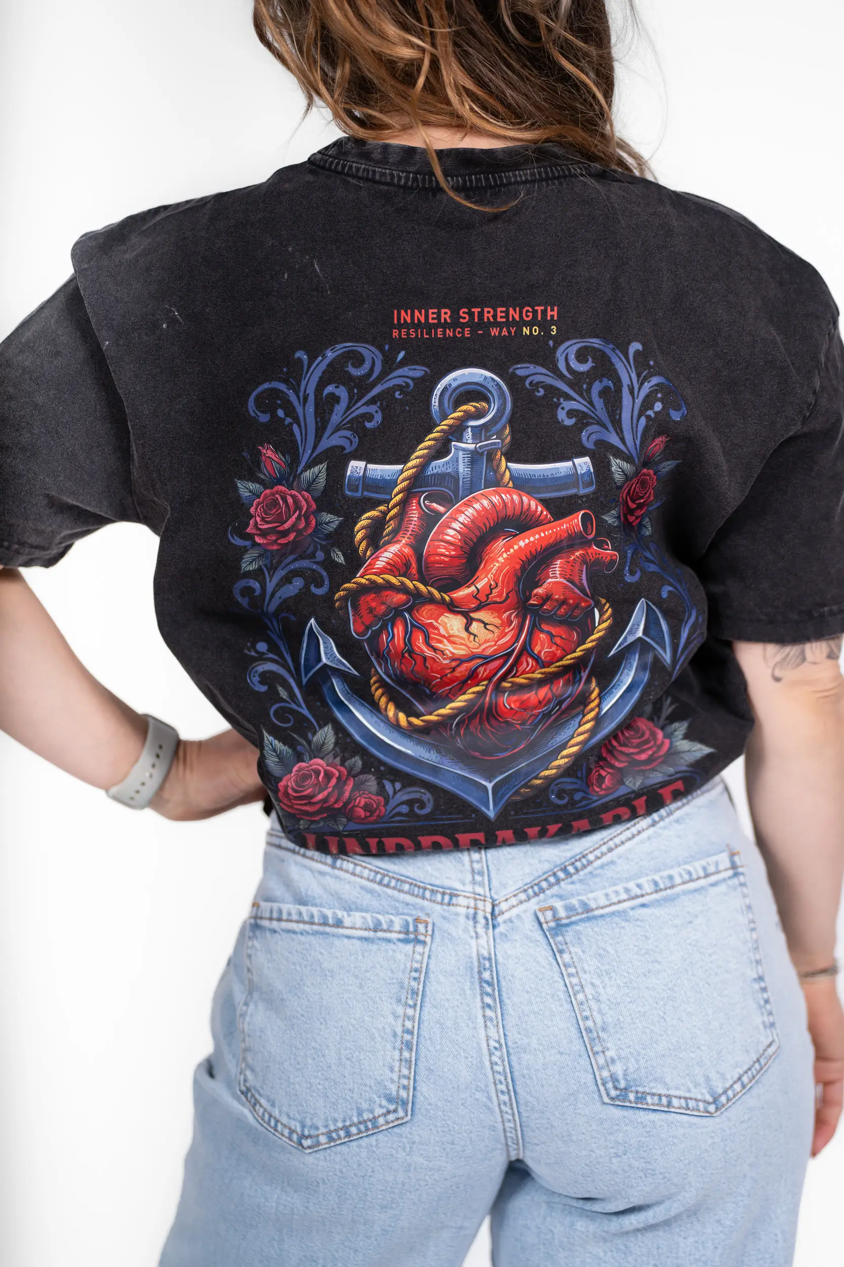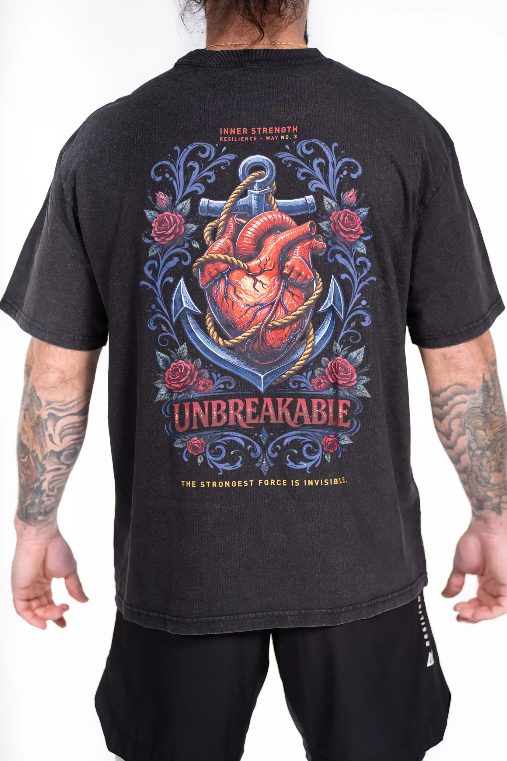 Dieses Design stammt aus der „Inner Force“-Reihe und zeigt ein kraftvolles Herz, das an einem Anker verankert ist – ein Symbol für Stabilität, Widerstandsfähigkeit und Standhaftigkeit in stürmischen Zeiten. Umgeben von markanten Details und der Botschaft „Unbreakable“ verkörpert es jene unsichtbare Kraft, die es dir ermöglicht, durchzuhalten, voranzukommen und nicht aufzugeben. Eine klare Botschaft: Ganz gleich, welche Prüfungen kommen – was im Inneren stark ist, kann nicht zerbrochen werden.
