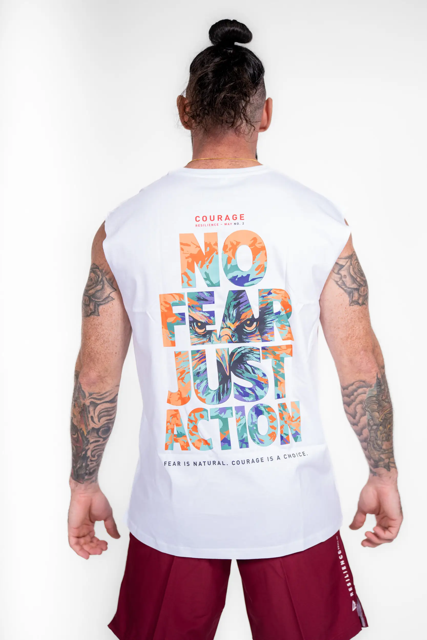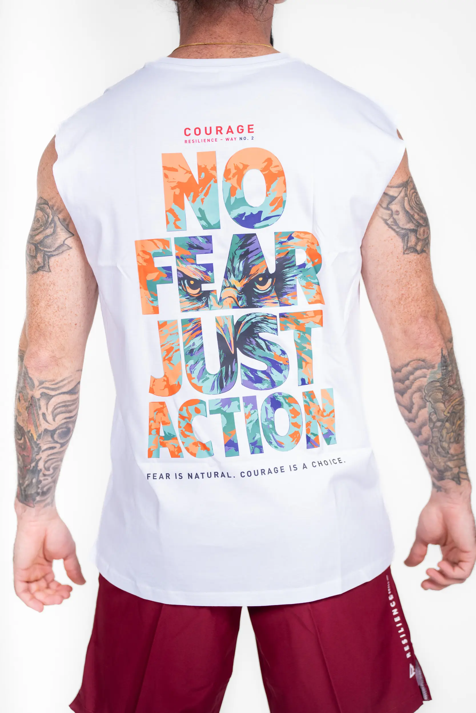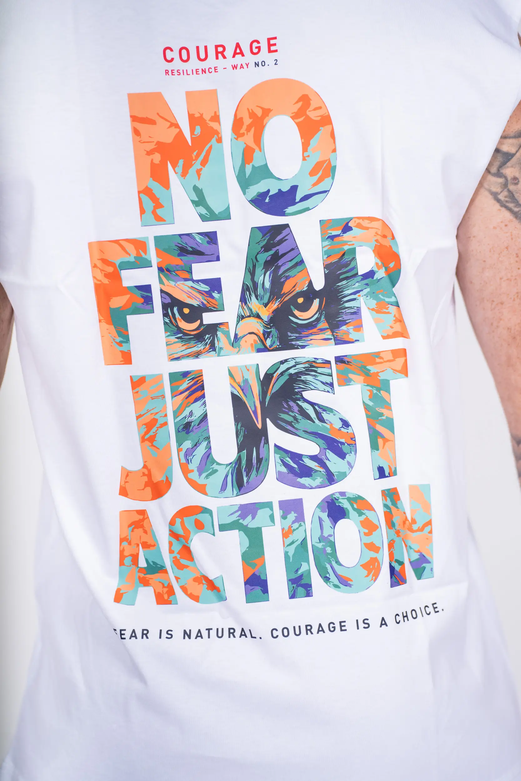 Inspired by the Courage path, this design sends a direct and powerful message: take action despite fear. The “No Fear Just Action” visual, paired with the falcon’s piercing gaze, embodies determination, clarity, and the ability to face challenges head-on. A symbol of vision and precision, the falcon reminds us that moving forward requires courage, but above all, a decision. Because fear is natural, but taking action remains a choice.