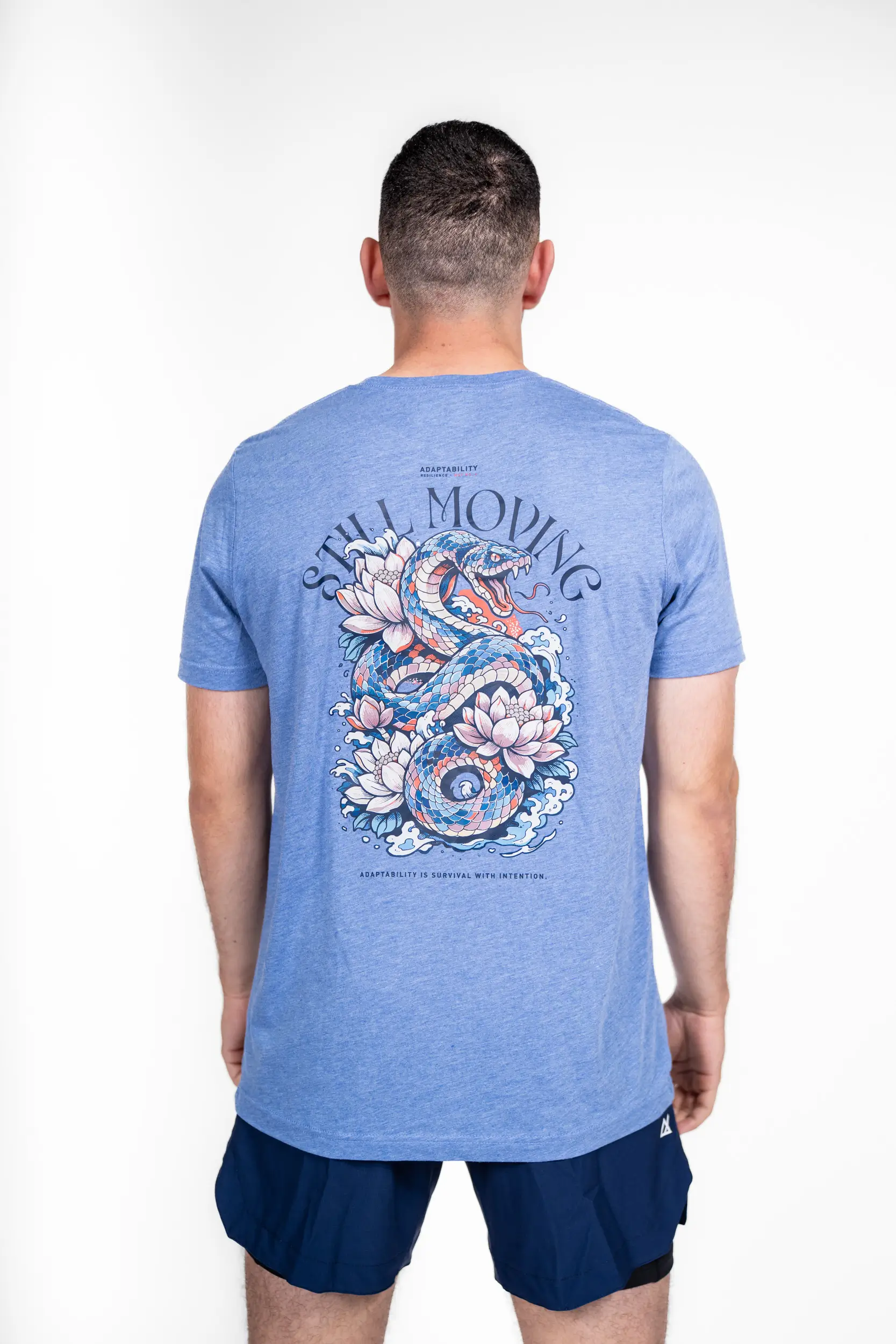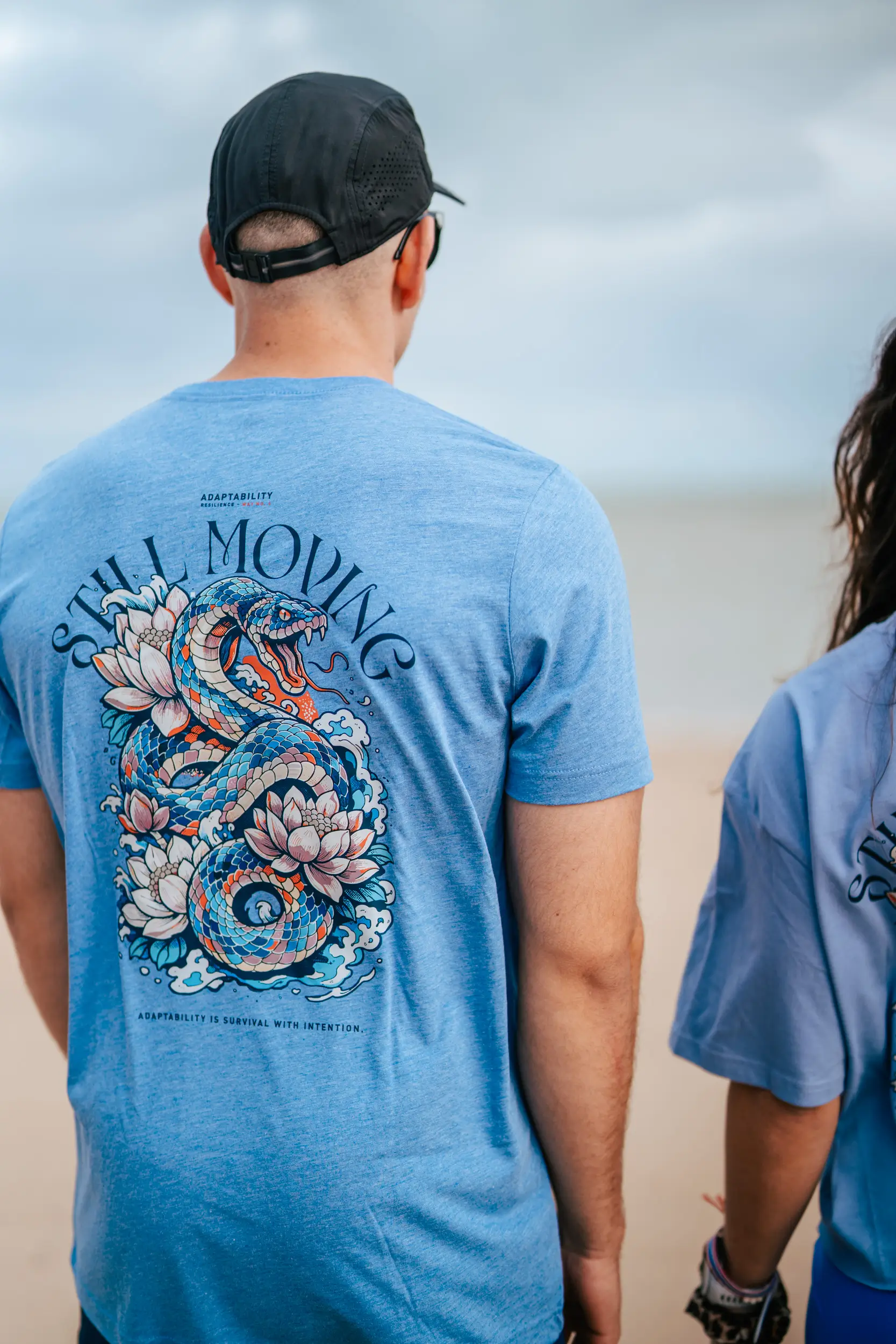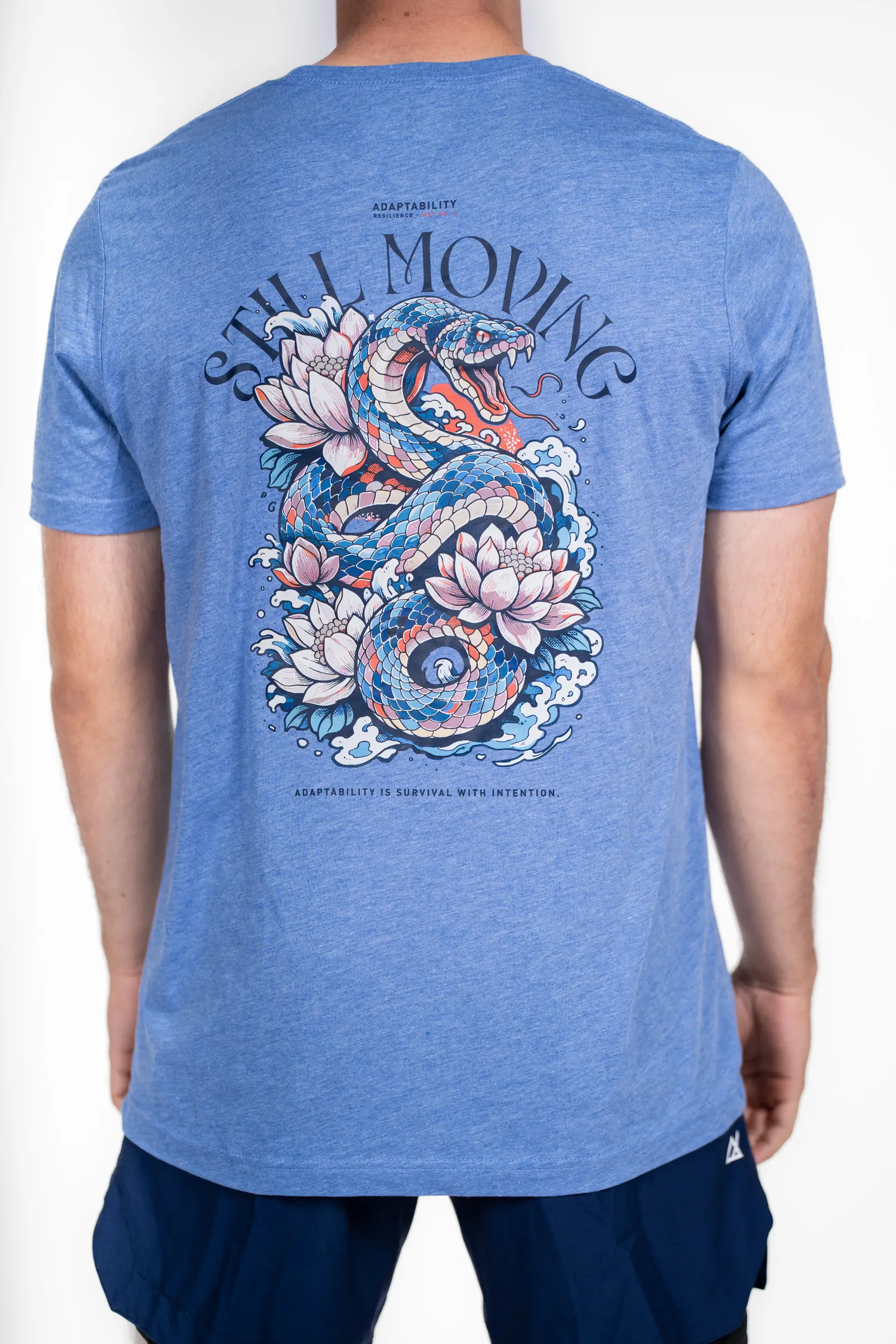 Issu du chemin Adaptabilité, ce design met en scène le serpent, symbole de transformation, d’évolution et de capacité à s’adapter en toutes circonstances. Entouré de fleurs de lotus et de vagues, il incarne l’équilibre entre force et flexibilité. Le message est clair : avancer, s’ajuster, progresser. Un visuel fort pour ceux qui savent que la vraie résilience, c’est savoir évoluer sans jamais se perdre.