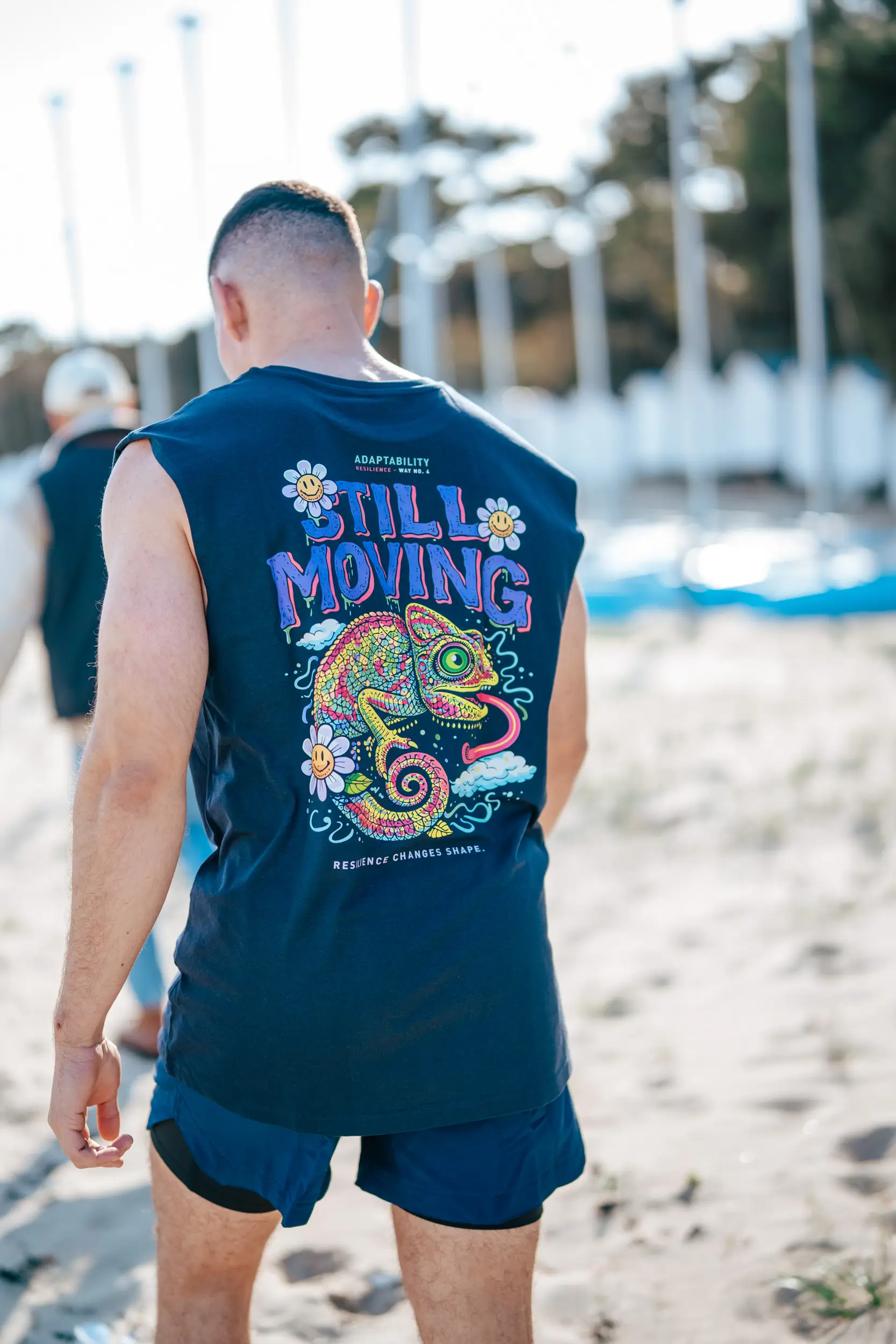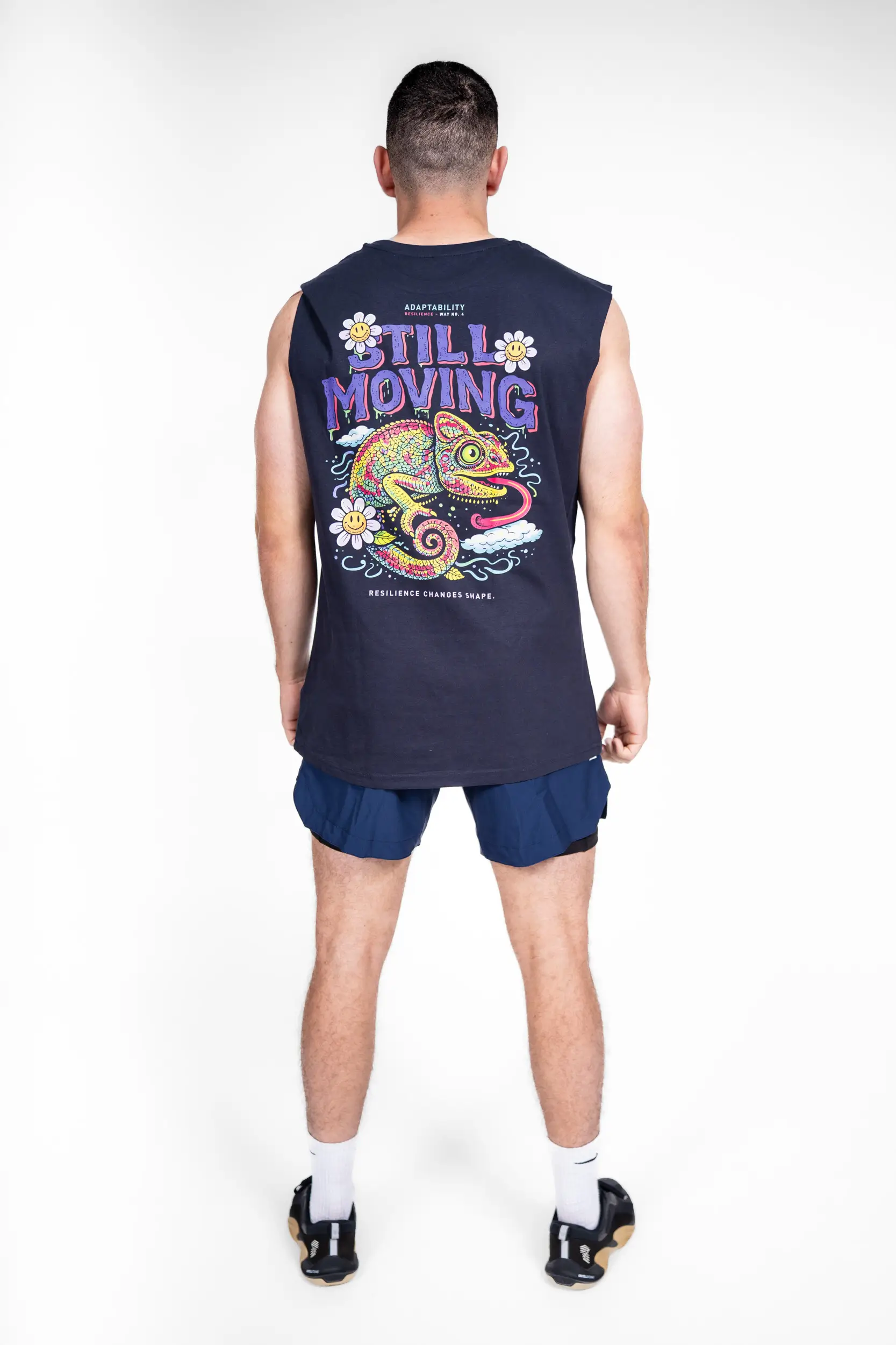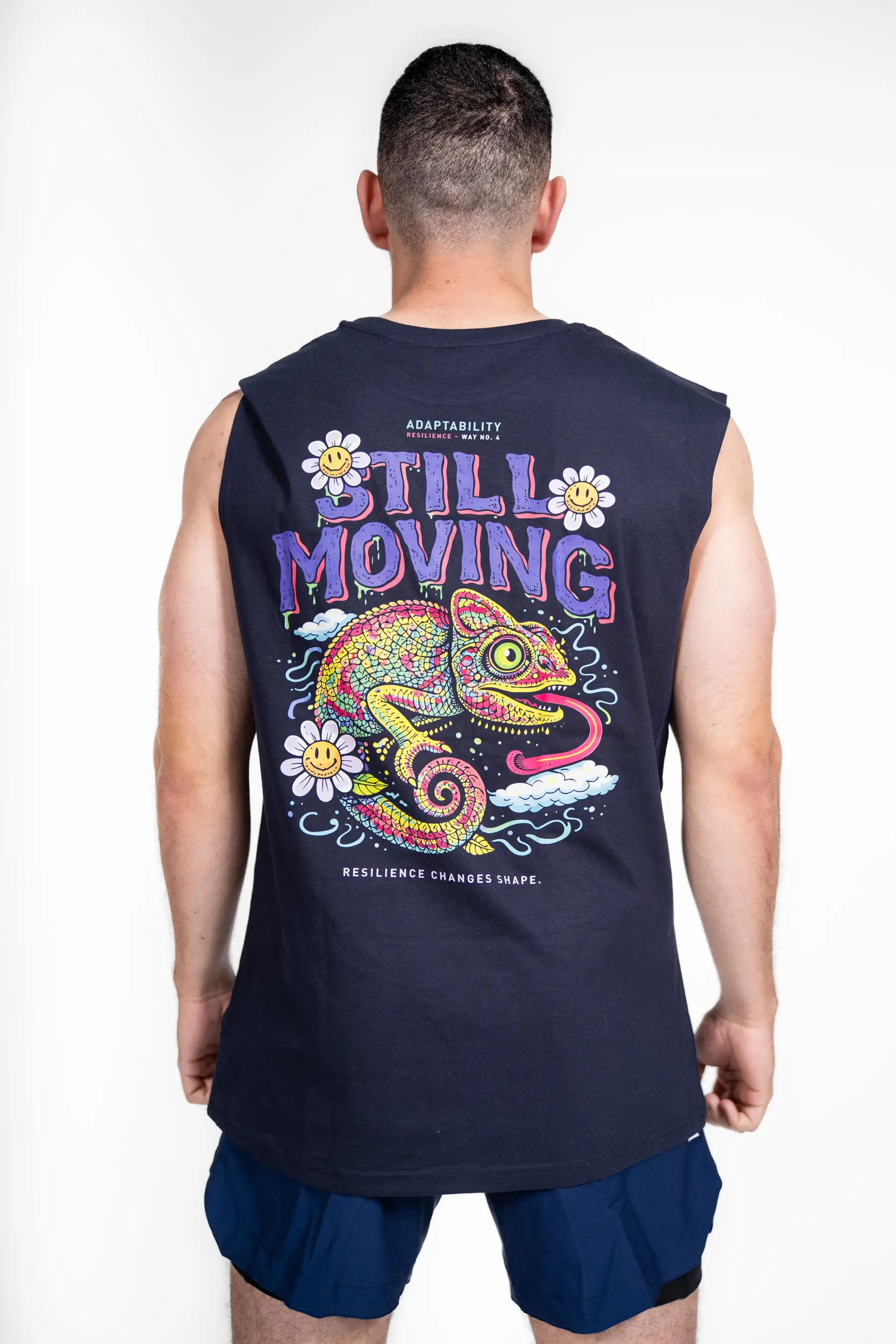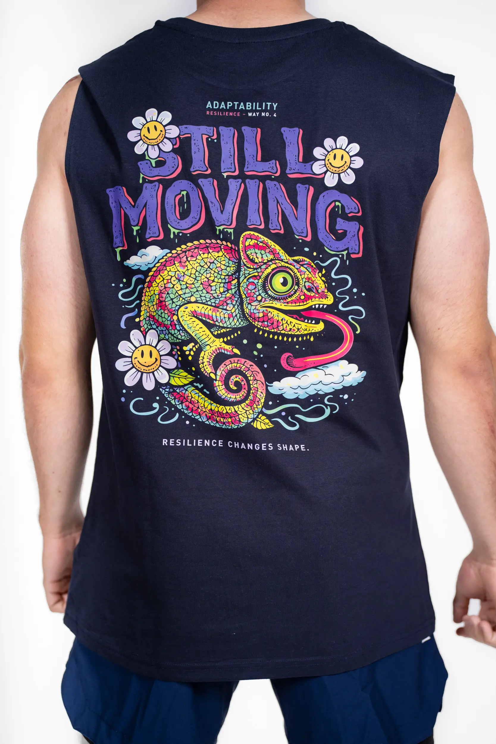 Inspirado no tema «Adaptabilidade», este design apresenta um camaleão vibrante e colorido, símbolo por excelência da capacidade de evoluir, adaptar-se e transformar cada situação numa oportunidade. Com o seu universo visual dinâmico e a mensagem «Still moving», lembra-nos que a resiliência não é algo estático: ela muda, adapta-se e avança. Um convite para continuarmos em movimento, independentemente dos obstáculos, transformando cada mudança numa força.